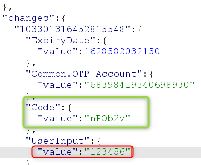 5. Send an invalid OTP to get the valid OTP back (see the “Code Value parameter” below):
