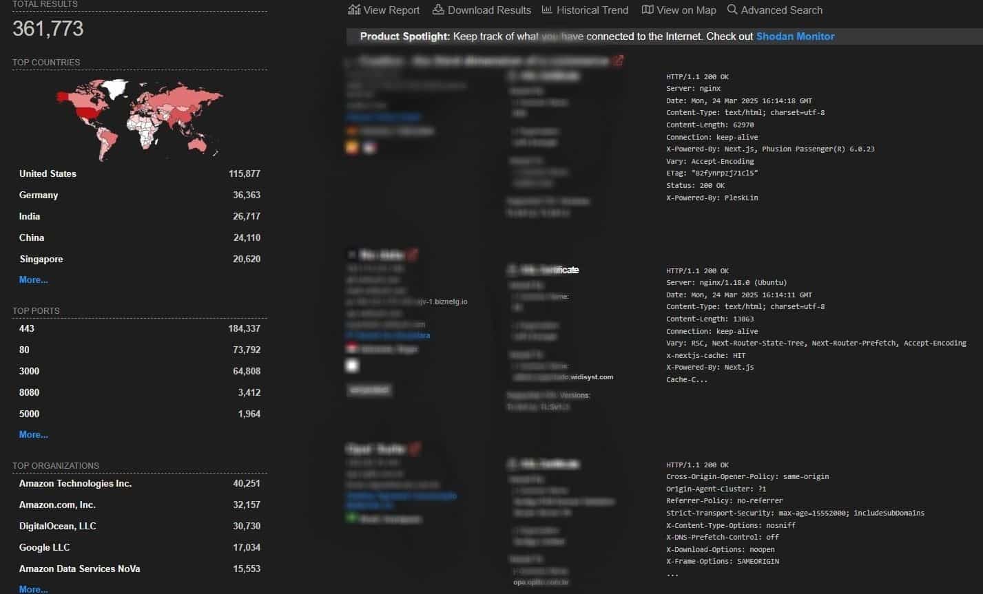 By March 24, 2025 there are around 361000 exposed targets using this framework according to shodan.io