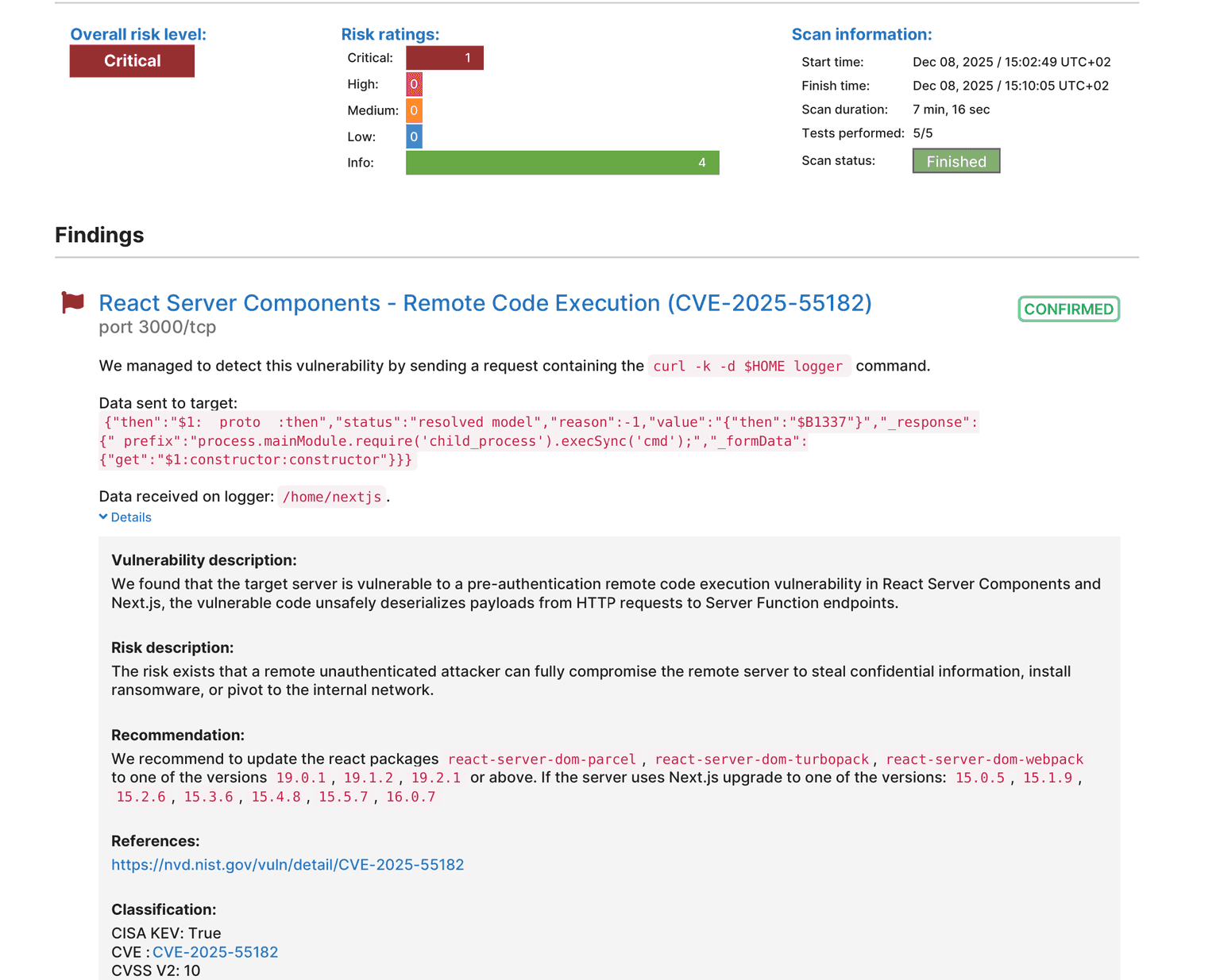 Detect CVE-2025-55182 with Pentest-Tools.com