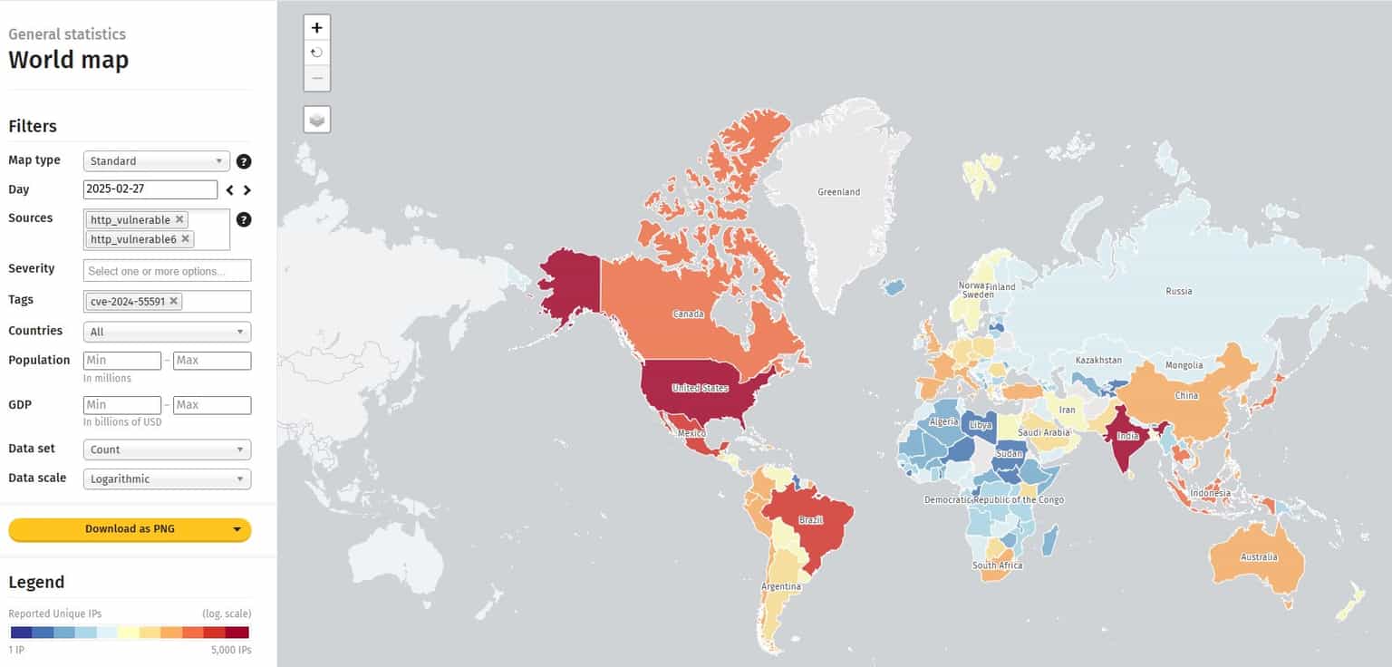 Checking Censys, which features more granular filtering, reveals up to 2,900,000 Fortinet interfaces that are potentially affected by CVE-2024-55591.